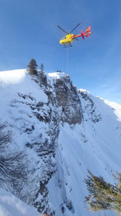 Der Snowboarder hatte Riesenglück. Er blieb dabei (Augenscheinlich) so gut wie unverletzt. Nach interner Absprache wurde schnell festgellegt, dass der Verunglückte mit einer Taubergung durch den