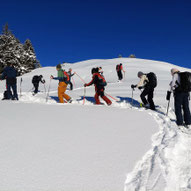 begann unsere Schneeschuhtour auf den Stübar. Nach einer Stunde erreichten wir das Ziel. Bei einer kurzen Rast auf dem Gipfel machte Herbert mit uns ein wenig Schneekunde. Für einen Biwakbau