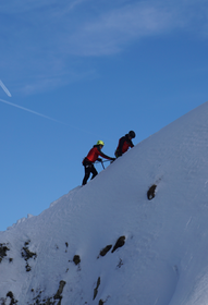 Steigeisen geübt. Abschließend wurde eine gemeinsame Übung abgehalten, bei der es galt, das über Kurstag Erlernte in der Praxis anzuwenden. Die Übungsannahme war, dass eine Person über eine