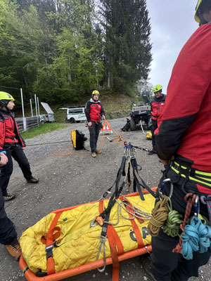 Im Rahmen unserer monatlichen Probe stand diesmal das Thema Liftbergung im Mittelpunkt. Unser Materialwart hat dafür ein neues Bergegerät zusammengestellt, das im Zuge der Übung ausprobiert und erklärt wurde.