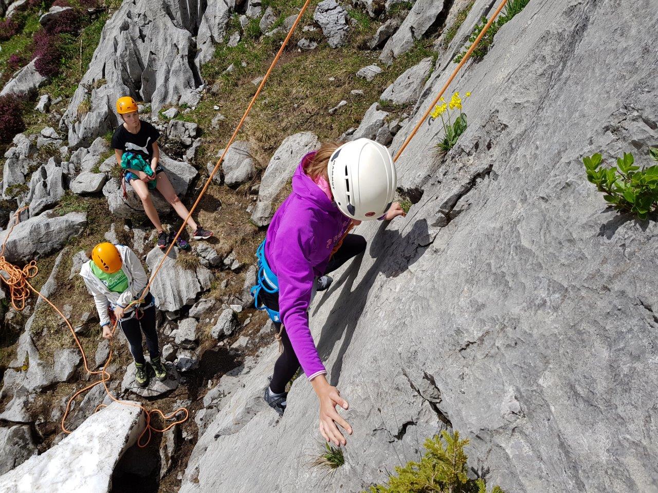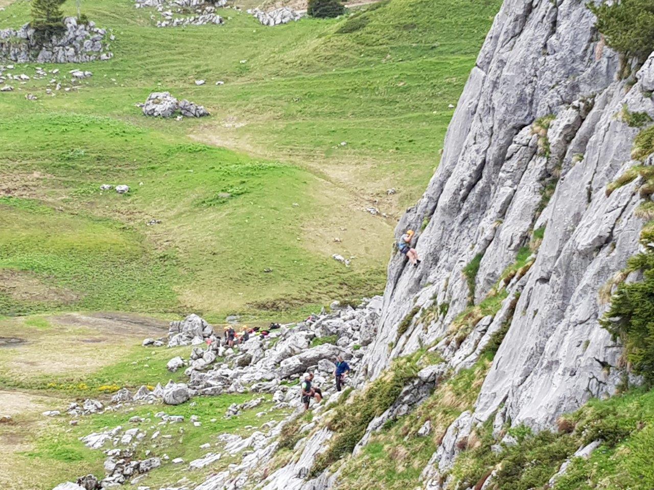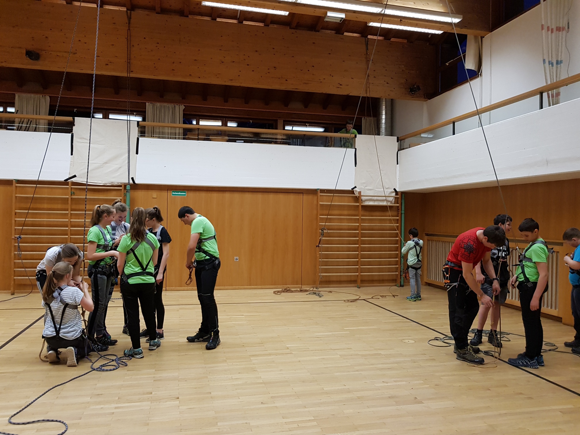 Am Samstag, dem 2. Juni 2018, trafen wir uns um 13:00 Uhr zu einem Kletternachmittag im Bergrettungsheim. Anschließend fuhren wir wie geplant zusammen mit dem Bergrettungsauto zur Biberacher Hütte. Nach einem ca. 5-minütigem Fußmarsch erreichten wir den Klettergarten südlich der Hütte. Nachdem wir noch eine kurze Einführung zum Klettern bekommen haben, ging es schon los. Gegenseitiges Sichern und selbständiges Klettern gehörten zum Programm.