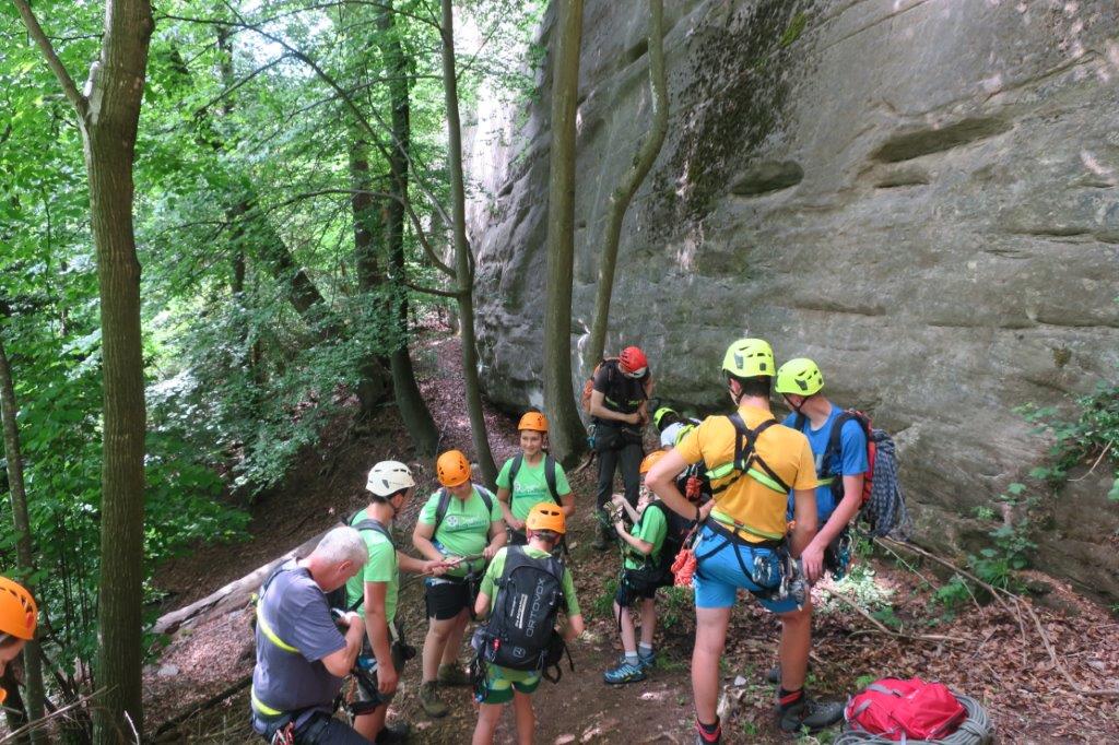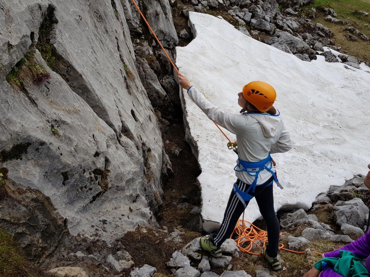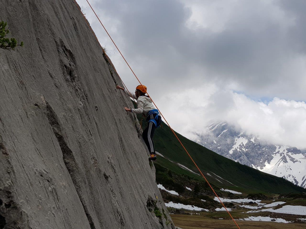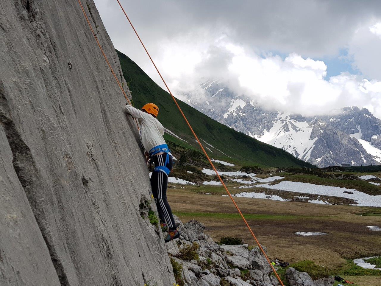 Am Samstag, dem 2. Juni 2018, trafen wir uns um 13:00 Uhr zu einem Kletternachmittag im Bergrettungsheim. Anschließend fuhren wir wie geplant zusammen mit dem Bergrettungsauto zur Biberacher Hütte. Nach einem ca. 5-minütigem Fußmarsch erreichten wir den Klettergarten südlich der Hütte. Nachdem wir noch eine kurze Einführung zum Klettern bekommen haben, ging es schon los. Gegenseitiges Sichern und selbständiges Klettern gehörten zum Programm.