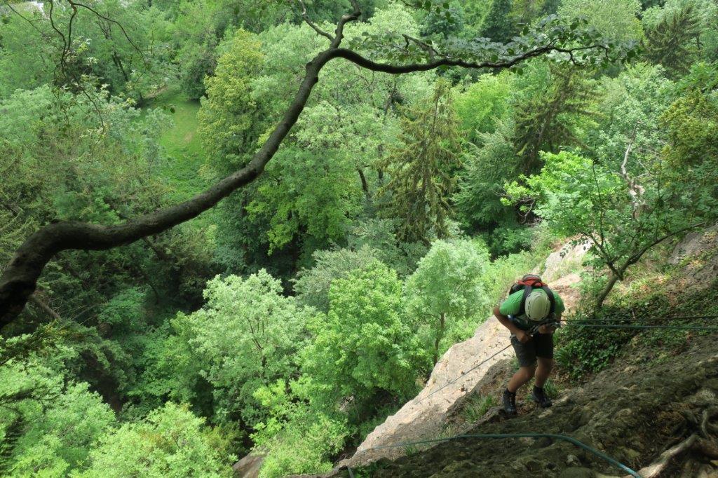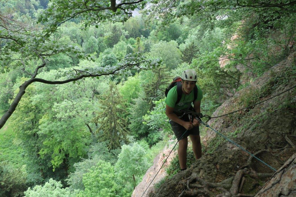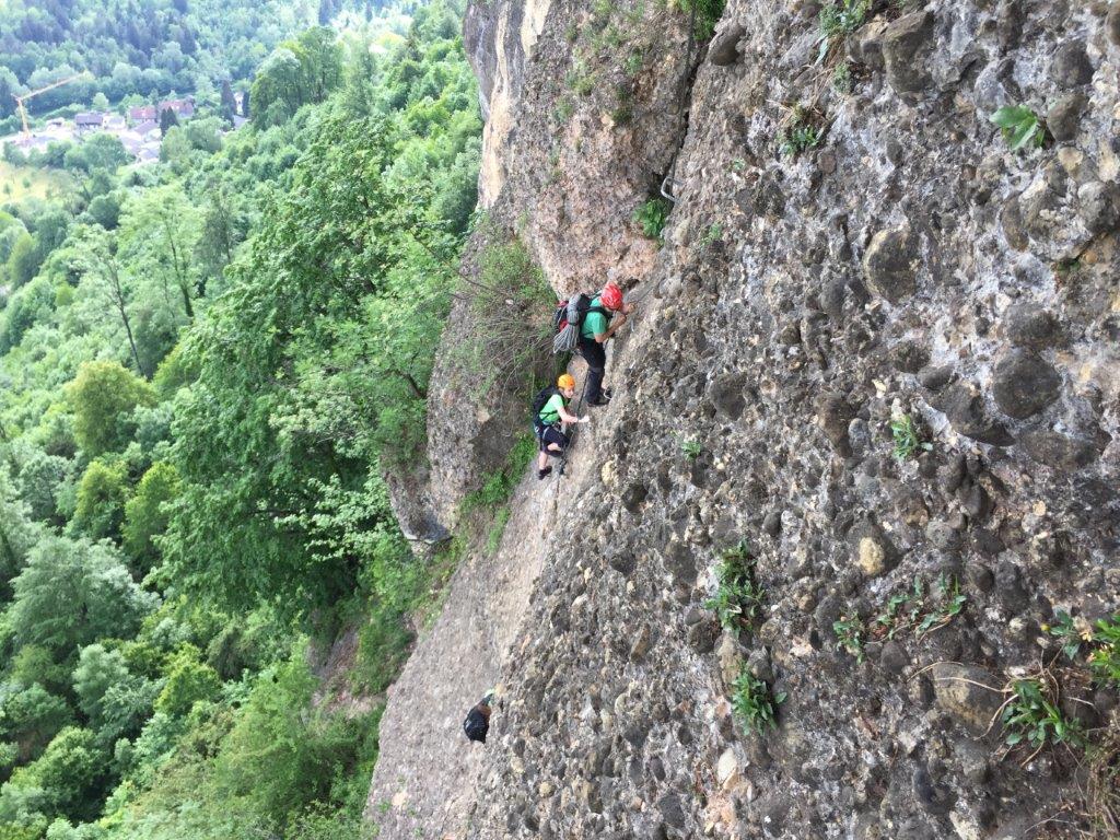 Wir die Jugendbergrettung Schoppernau trafen uns um 12:45 Uhr beim Bergrettungsheim in Schoppernau. Nach gut einer Stunde Autofahrt erreichten wir unser heutiges Ziel, das Klettergebiet Känzele in Bregenz. Auf dem heutigen Programm standen das selbständige Abseilen und das sichere Begehen eines Klettersteigs. Bevor wir 2-mal ca. 30 Meter abseilen durften, übten wir den Abseilvorgang nochmal auf sicherem Boden. Die Verständigung im alpinen Gelände war ein weiterer wichtiger Punkt den wir vor Beginn der Abseilübung besprochen haben, dies ist enorm wichtig um Missverständnisse und Unfälle zu vermeiden. Zu diesem Zweck hatten wir Funkgeräte mit dabei. Nun ging es los, die ersten Schritte über dem Abgrund erforderten ein wenig Mut, jedoch wurden wir von unseren Begleitern zusätzlich gesichert so das nichts passieren konnte. Als wir alle wieder sichern Boden unter den Füssen hatten, machten wir einen kurzen Fußmarsch zum Einstieg des Klettersteigs, wo wir wieder nach Oben kletterten. Der Klettersteig ist sehr schön angelegt und man hat einen herrlichen Ausblick auf das Rheintal. Als Draufgabe für den schönen Nachmittag gönnten wir uns dann noch einen köstlichen Döner.