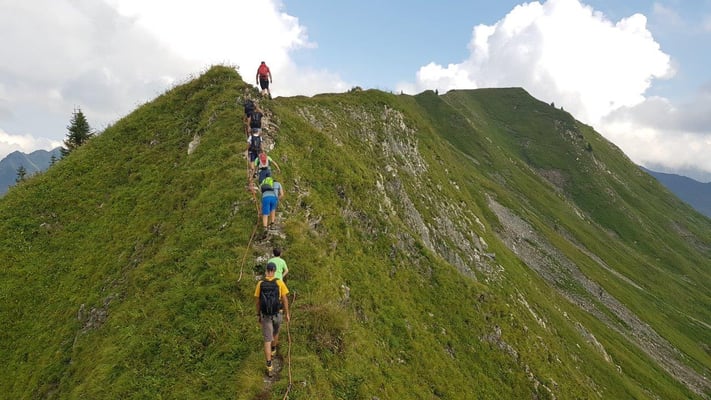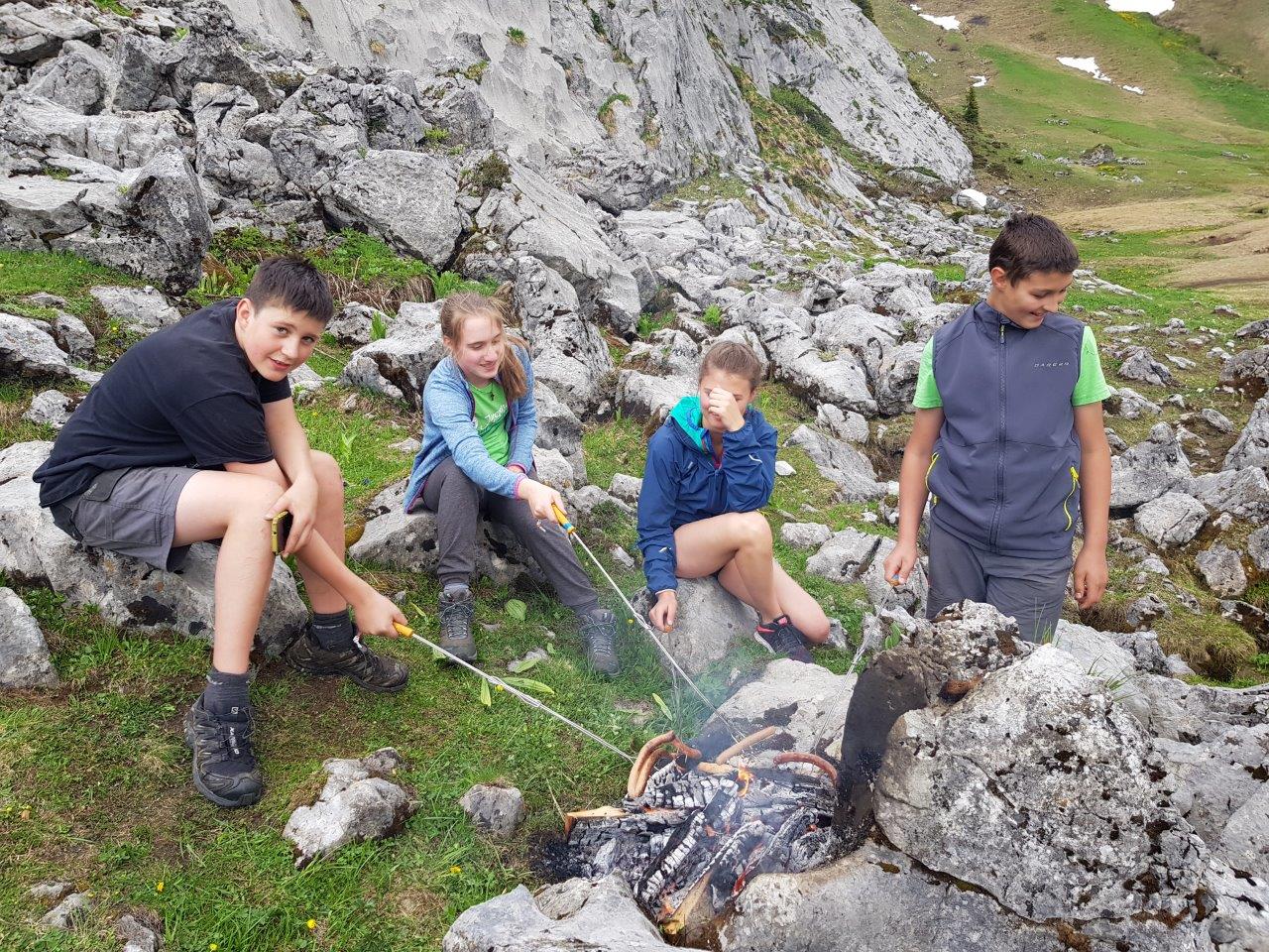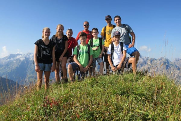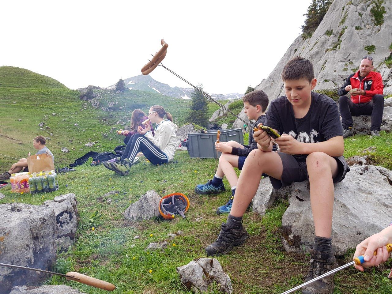 Am Sonntag dem 19. August trafen wir uns um 07:30 beim Bergrettungsheim um eine Wanderung entlang der Gemeindegrenze von Schoppernau zu unternehmen. Zusammen mit Norbert, Dietmar und Michael fuhren wir Jungenbergretter/innen zur Alpe Vorderüntsche. Dort angekommen servierte uns unsere Bergrettungskollegin Silvia ein leckeres Älpler Frühstück. Das Wetter meinte es gut mit uns und so konnten wir während des Frühstücks noch den Sonnenaufgang miterleben. Wohl gestärkt verabschiedeten wir uns bei unseren Gastgebern auf der Alpe und unserem Chauffeur Herbert. Dann ging es los zum Häfnerjoch über die Güntlespitze zur Hochstarzel weiter zum Starzeljoch bis zum Grünhorn wo wir die Gedenkmesse unseres langjährigen Pfarrer Josef Jäger besuchten. Nach der Messe wanderten wir talwärts zur Alpe Althornbach wo uns Herbert wieder mit dem Bergrettungsauto abholte. Danke an Nobert, Michael und Dietmar für den tollen Ausflug.
