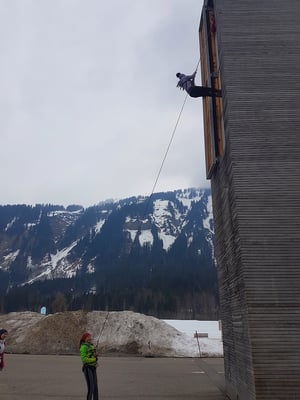 Am Samstag, den 17.03.2018 hatten wir Jugendbergretter der Bergrettung Schoppernau ein Alternativprogramm gehabt, weil durch die schlechte Wettervorhersage der geplante Iglubau leider abgesagt werden musste. Um 14.00 Uhr trafen wir uns im Bergrettungsraum. Während die einen Ihre Ausrüstung vorzeigten, hatten die anderen parallel dazu Knotenkunde. Als alle fertig waren, fand eine Abseilaktion vom Schlauchturm statt. Auf einmal kam eine Alarmierung auf dem Pager (Übung). Bei diesem Einsatz durften ein Teil von uns mit dem Quad zum Einsatzort mitfahren. Nach dem beim Verletzten Erste Hilfe geleistet wurde, konnte der Patient mit dem Quad zum Bergrettungsheim transportiert werden. Es war ein spannender und lustiger Nachmittag für uns Jugendbergretter.
