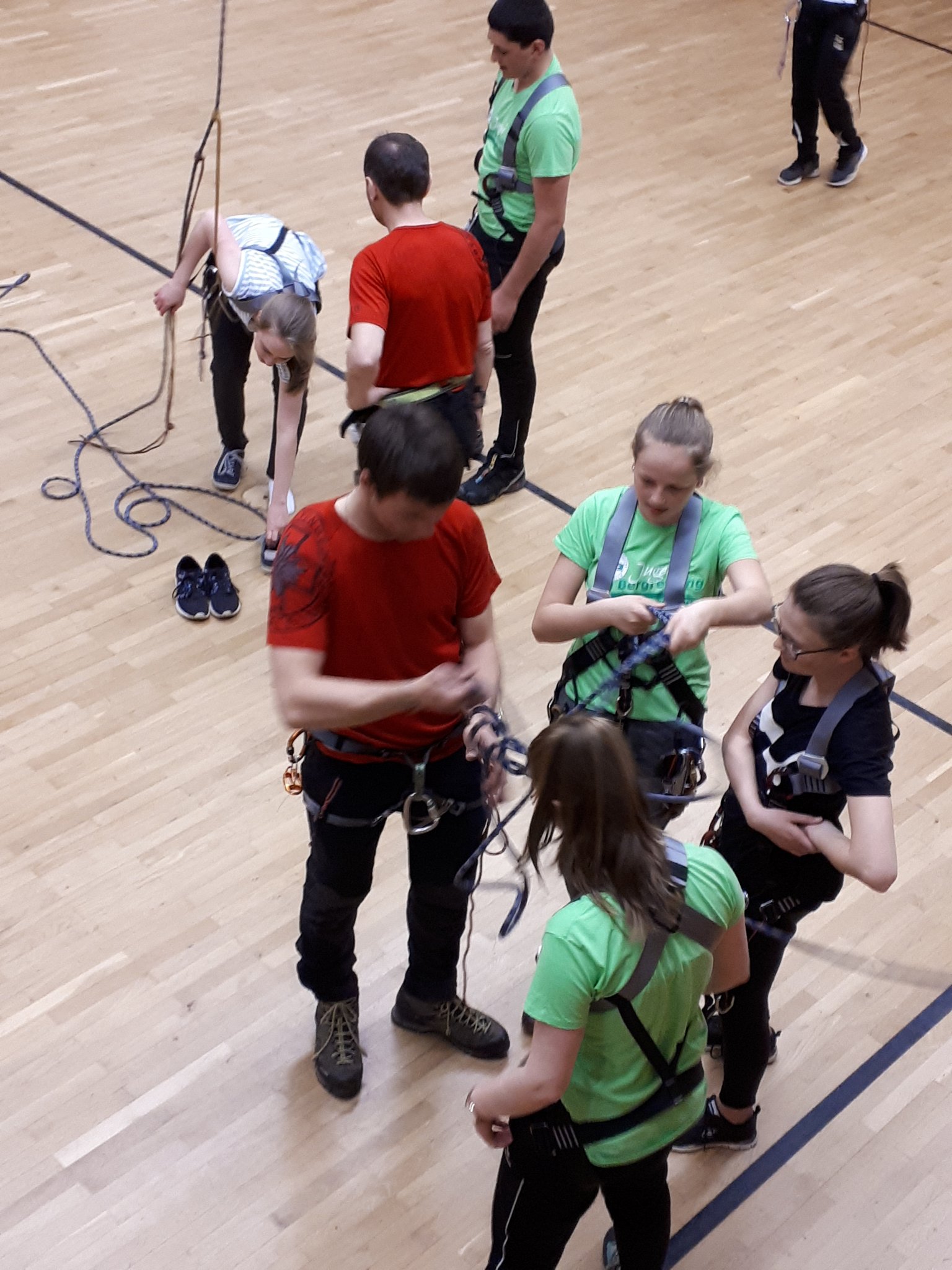 Wir trafen uns am Freitag den 6.4.2018 um 19Uhr im Bergrettungsheim. Das Thema von diesem Abend war Seil und Knotenkunde. Wir gingen zusammen in den Saal, wo Dietmar und Thomas schon drei verschiedene Stationen aufgebaut haben. Wir haben immer zu zweit die Stationen durch gearbeitet. Bei der einen Station musste man alle Knoten knüpfen damit sie alle sitzen. Danach musste man sich alleine an einem Seil hinauf ziehen, als man an der Decke angekommen war wurde man vom Partner wieder runter gelassen. Bei der dritten Station mussten wir einander gegenseitig abseilen. Zum Schluss haben wir noch zusammen ein lustiges Spiel mit den Jasskarten gespielt. Anschließend haben wir noch etwas im Bergrettugnsheim getrunken.