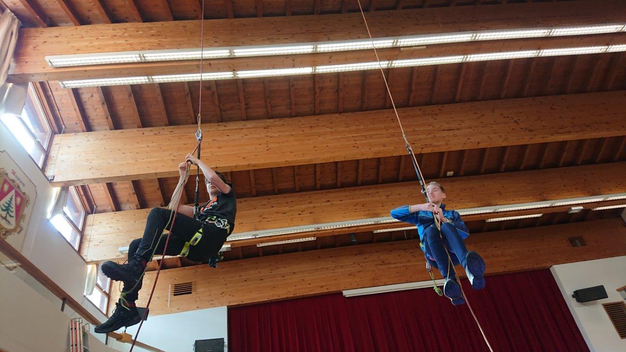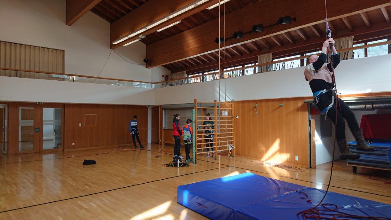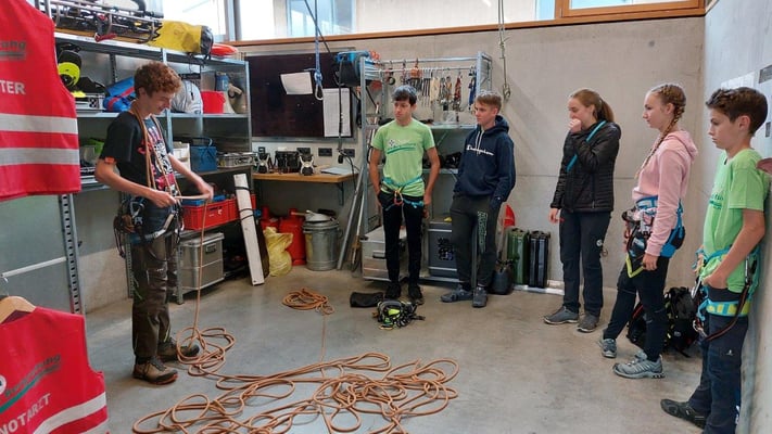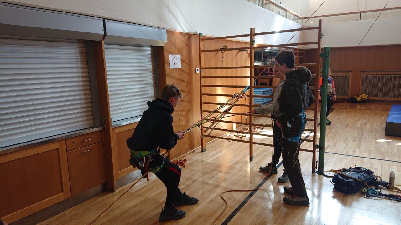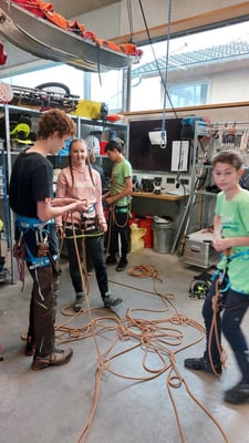 Am 9.4.2022 trafen wir uns im Bergrettungsheim. Als erstes gaben wir unsere Winterausrüstung, bestehend aus Schaufel, Sonde und LVS, zurück. Anschließend wurden wir in 3 Gruppen aufgeteilt. Bei Dietmar wiederholten wir die Knoten, welche wir danach selbst anwenden mussten. Danach konnten wir uns noch vom Schlauchturm abseilen. Bei Magdalena und Lukas im FM Felder Saal konnten wir die zuvor gelernten Knoten anwenden und Flaschenzüge machen. Mit der Prusiktechnik konnten wir uns dann selbst an einem Seil hochziehen. Michael zeigte uns später noch weitere Flaschenzüge. Am Schluss bekamen wir noch alle ein Getränk. Es war ein sehr interessanter Nachmittag! Danke an Magdalena, Dietmar, Lukas und Michael!