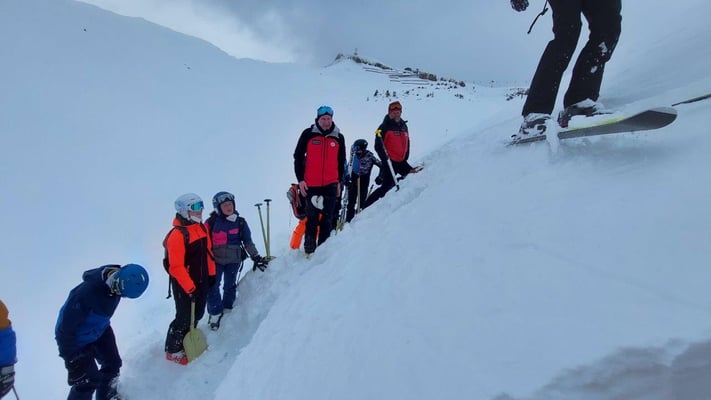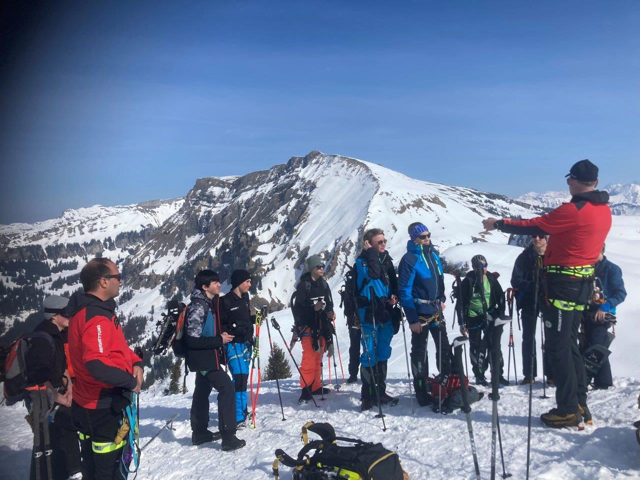 Am 20.2.2022 um 10:00 Uhr trafen wir uns auf dem Diedamskopf. Bevor wir uns ins Gelände wagten, wurde ein großer LVS-Check durchgeführt und überprüft, ob alle LVS Geräte einwandfrei funktionieren. Der Vormittag wurde genutzt, um einen Blick in die Schneedecke zu werfen.