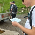 Nach der Einführung haben wir uns ein zwei Gruppen aufgeteilt. Jede Gruppe hat für den Anfang ein GPS-Gerät bekommen und das auf ein Fahrrad montiert. Kurz darauf haben wir uns auf den Weg gemacht und sind dem Track auf dem GPS gefolgt. Es hat uns mit den Fahrrädern über einen großen Umweg nach Gräsalp zum Anfang des Bikeparcours geführt.