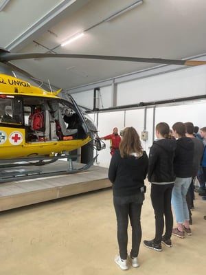 Am 12.11.22 trafen wir uns um 13:00 Uhr beim Bergrettungsheim, Thema Besichtigung des Hubschrauber Stützpunkt C8 in Nenzing. Mit uns zum C8 fuhren Patrick, Sandro und Angela. In Nenzing angekommen wartete Daniel auch schon auf uns, er hatte heute Flugrettungsdienst. Er zeigte uns zuerst die Räumlichkeiten, dann ging es zum Hubschrauber, den er uns bis aufs kleinste Detail erklärte. Dann durften wir uns sogar rein setzten, hier hat uns Daniel die ganzen Knöpfe erklärt. Auf einer Plattform wurde der C8 Rettungshubschrauber nochmal ins Frei geschoben. Danach machten wir noch eine kleine Erste Hilfe Übung, wo wir die Trage aus dem Hubschrauber rein und raus geschoben haben. Bei dieser Übung wurde uns auch alles Über das ABCDE – Schema erklärt. Nach diesem interessanten und lehrreichen Nachmittag, fuhren wir wieder zurück nach Schoppernau.