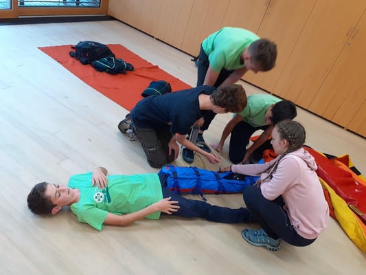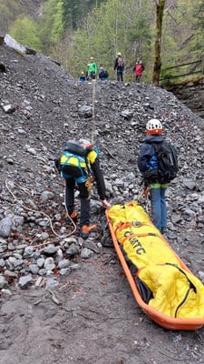 Am 7.5.2022 trafen wir uns im Bergrettungsheim. Dort haben wir zuerst den Ablauf der Übung besprochen und die Aufgaben eingeteilt. Nach der Gruppeneinteilung ging es ab zu Unfallstelle beim „Himmelrisetunnel“. Dort haben wir eine Verletzten Person, welche nach einem Fahrradunfall vom Weg abgekommen ist, versorgt und danach mithilfe eines Mannschaftszug und der Gebirgstrage wieder auf den Weg gezogen.