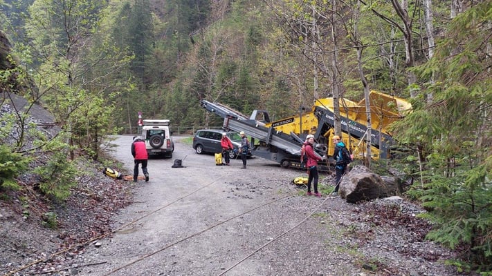 Am 04.06.2022 trafen wir uns im Bergrettungsheim. Als erstes hat man uns gesagt, was man heute auf dem Programm steht. Wir werden einen Übungsklettersteig im Oberdorf im kleinen Steinbruch am „Bäg „anlegen. Wir mit dem BR-Auto ins Oberdorf.