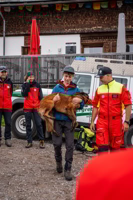 Der nächste Tag begann mit einem hervorragenden Frühstück. Nach dem zusammenpacken aller Rucksäcke, wurden diese verladen und es ging zu unserem nächsten Programmpunkt weiter. Hierfür besuchten uns zwei Hundeführer von der Hundestaffel. Sie erklärten uns alles, was man zur Hundestaffel Vorarlberg wissen muss, und zeigten uns die verschieden Suchmetoden, wie ein Hund getragen werden kann und erklärten wie man Hundeführer werden kann und wie die Ausbildung mit den Hunden so abläuft.
