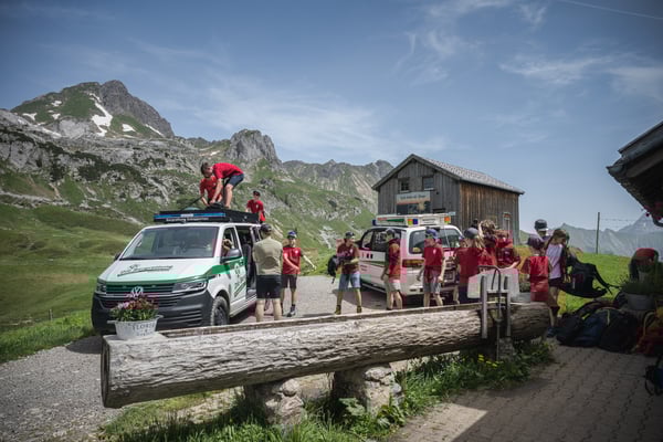 Am Freitag, den 19. Juli 2024, trafen wir uns um 18:00 Uhr im Bergrettungsheim. Nach einer kurzen Begrüßung stiegen wir in das neue Bergrettungsauto und fuhren zum Hochseilgarten in Schröcken.