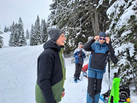 legten los. Jeder bekam eine Sonde, eine Lawinenschaufel und ein LVS-Gerät.