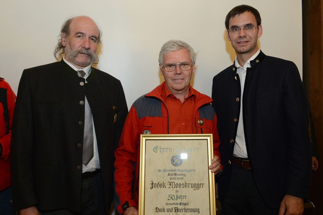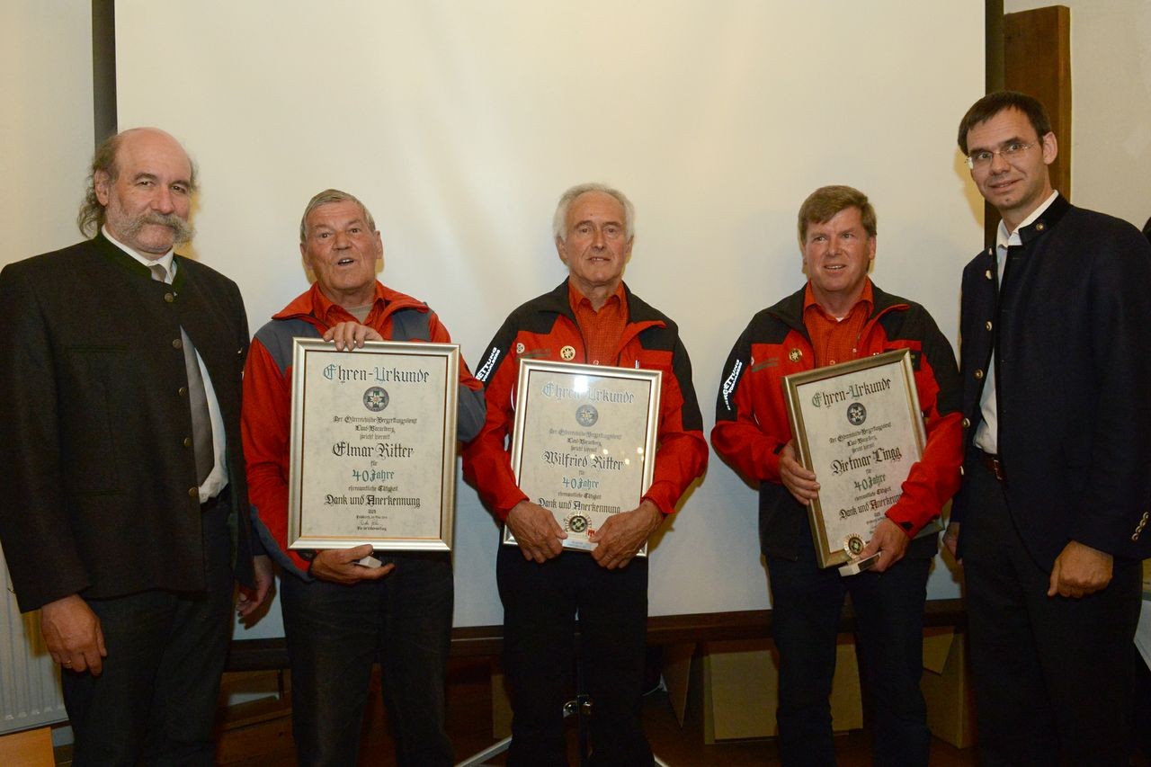 Am 04. Mai fand die Jahreshauptversammlung des Österr. Bergrettungsdienstes - Land Vorarlberg statt. Im Rahmen der Jahreshauptversammlung wurden zahlreiche Bergretter geehrt. Auch wir hatten 4 Jubilare, welche hier geehrt wurden. Dietmar Lingg, Elmar Ritter und Wilfried Ritter wurden für 40 Jahre geehrt. Jodok Moosbrugger hatte das 50-Jahr Jubiläum.
