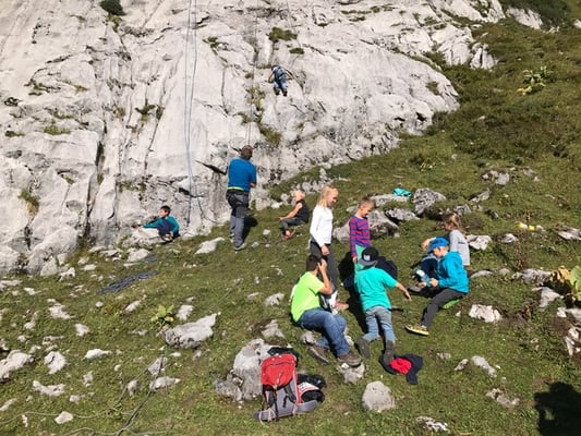 Nach einem gemütlichen Ausklang in der Biberacher Hütte starteten wir am Sonntag in Richtung Gigl-Turm. Dort gab es dann viele Infos über das Karten lesen und die Orientierung. Edi und Christian machten mit den Kindern einige Spiele. Auf dem Rückweg zur Hütte gab es noch praktische Tipps zur Ersten Hilfe.
